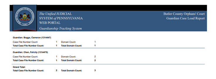 Note: The detailed version has also been enhanced to clearly indicate the total number of cases and domains for each guardian on the report and grand totals for all guardians across the report. |